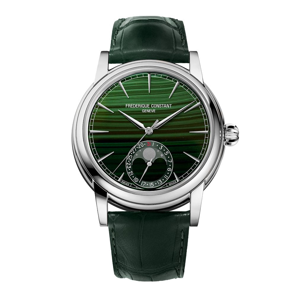 The steel case has been resized to a smaller 40mm from a previously 42mm size, a classy and classic diameter housing a new dial free from numerals. Slim hour markers and a ‘railtrack’ minute circle encompass a salmon sunburst dial.