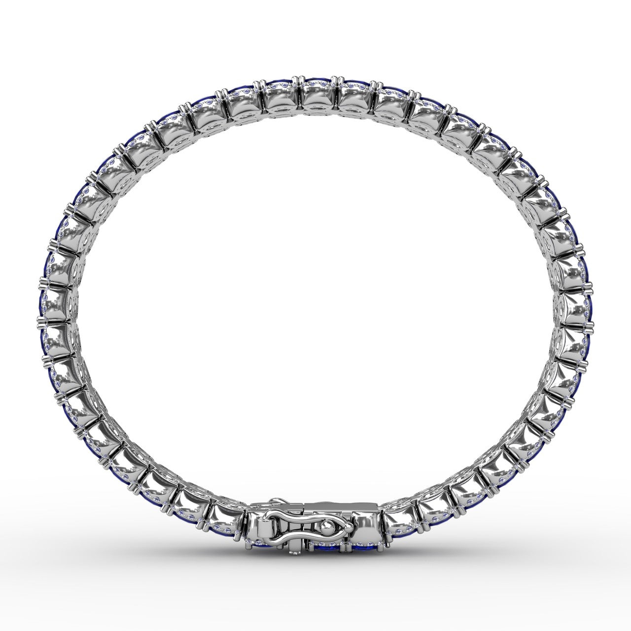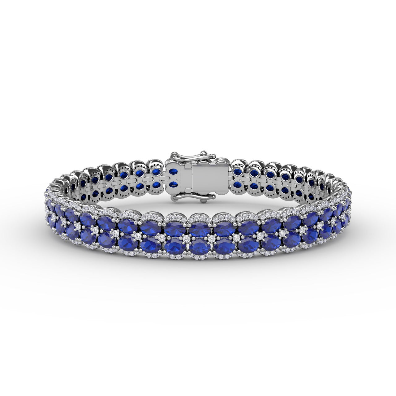 This double oval sapphire and diamond bracelet comes in a variety of material types like 14k white gold, yellow gold, rose gold and can be customized. Fana gemstone bracelets are perfect for that special woman in your life.