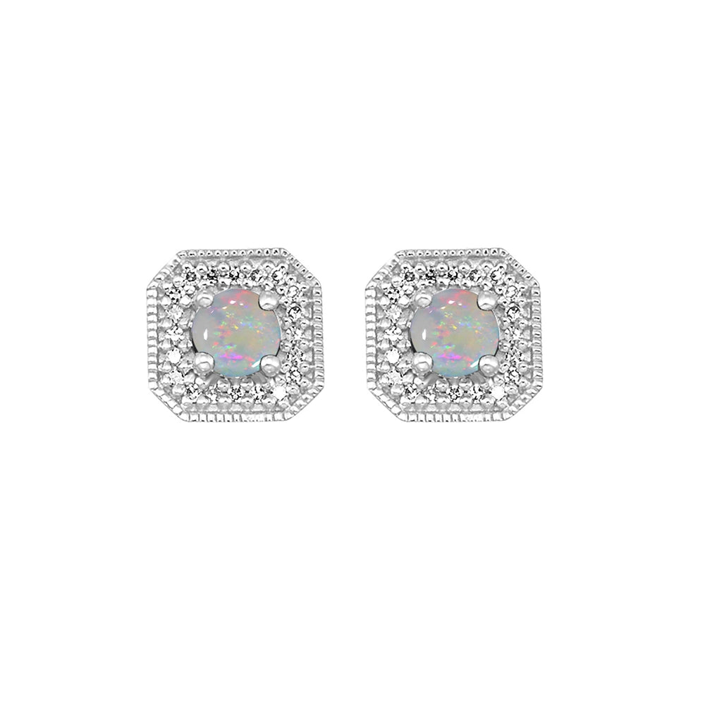 10Kt White Gold Diamond 1/10Ctw & Opal 3/4Ctw Earring