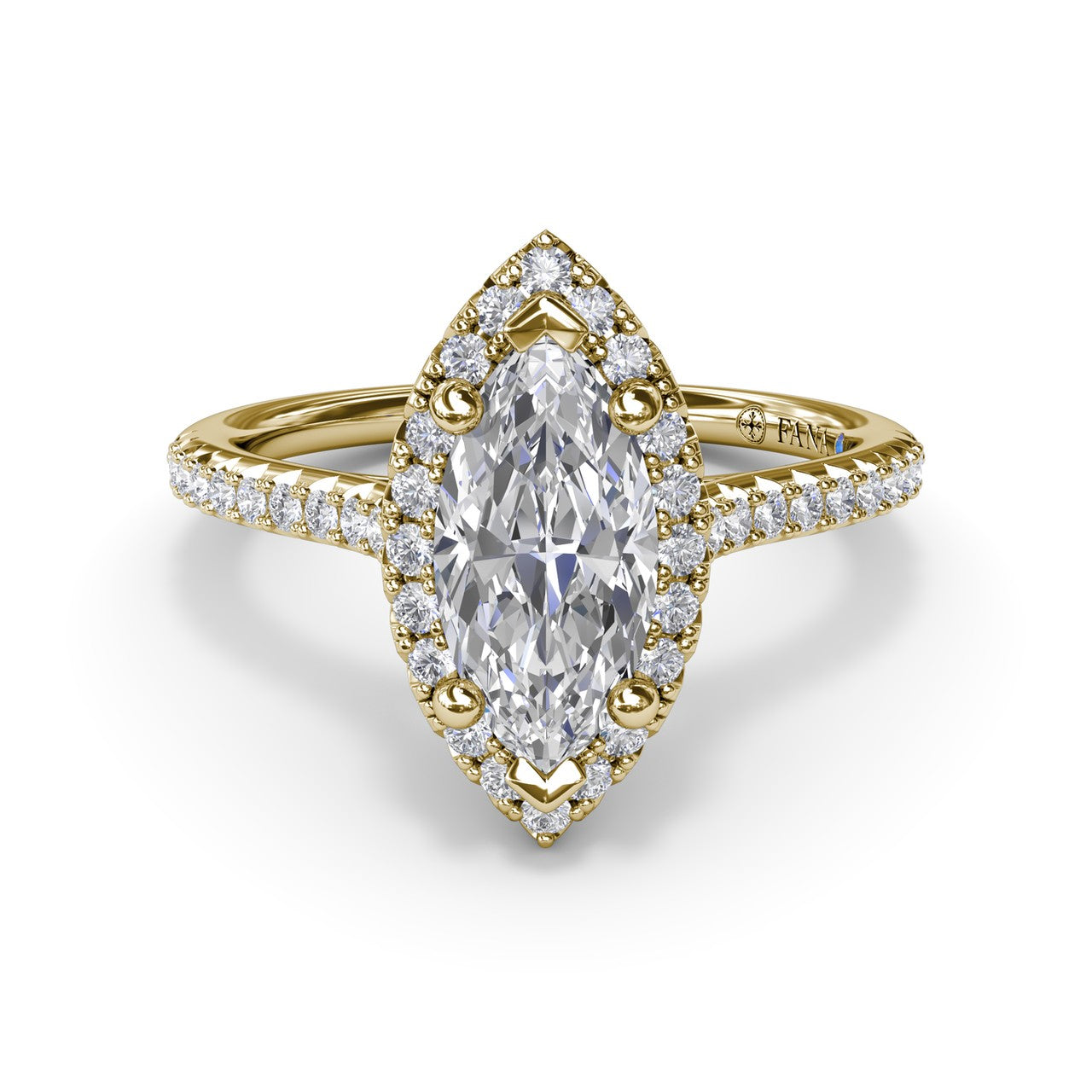 You're reviewing: Fana 18k Yellow Gold Delicate Marquise Halo And Pave Band Engagement Ring