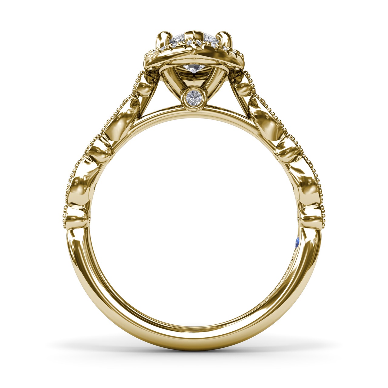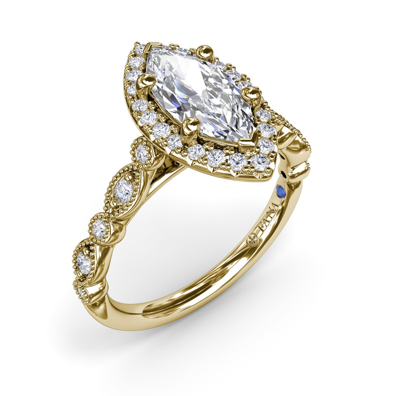 Fana 18k Yellow Gold Classic Marquise Engagement Ring with Detailed Milgrain Band