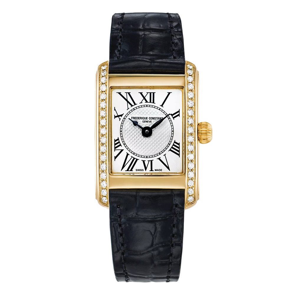The seamless lines and elegant polished case reveal a classical white dial showcasing intricate “clous de Paris” decoration and traditional Roman numeral indexes. The carrée design of the smooth polished case perfectly blends and embellishes the feminine wrist for a flawless taylor-made match.