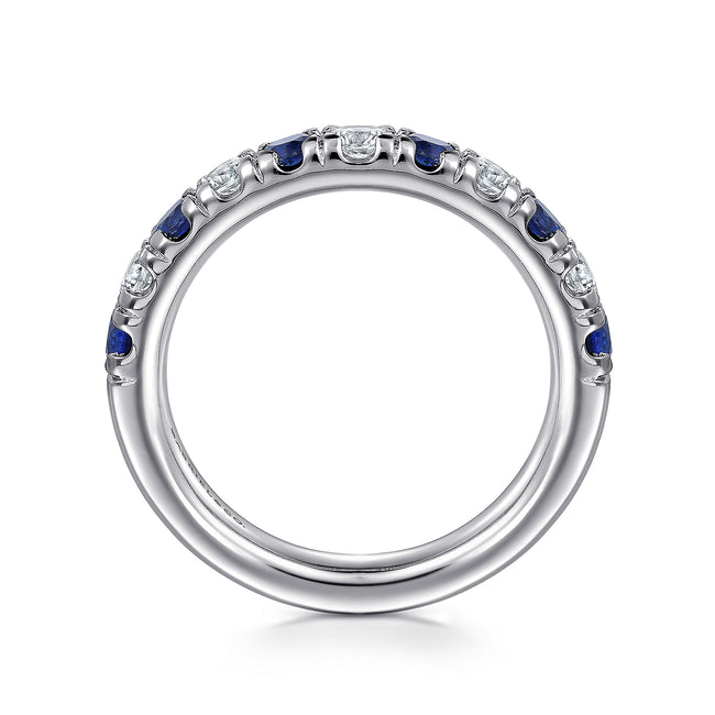 14K White Gold 11 Stone Diamond and Sapphire Anniversary Band