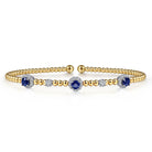 14K White-Yellow Gold Bujukan Sapphire and Diamond Halo Bangle
