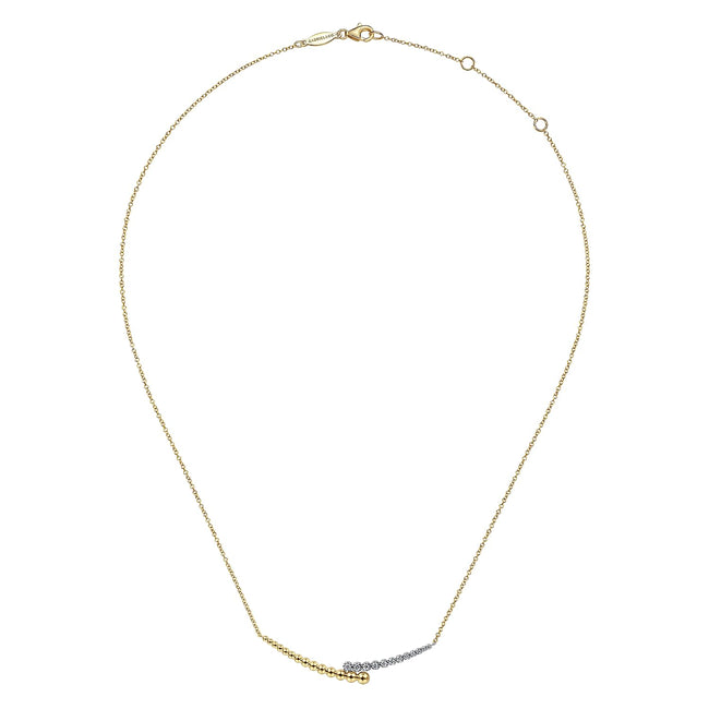 14K Yellow-White Gold Bujukan Diamond Bar Necklace