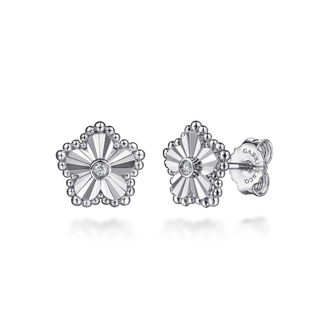 925 Serling Silver Diamond Bujukan Frame Flower Diamond Cut Stud Earrings