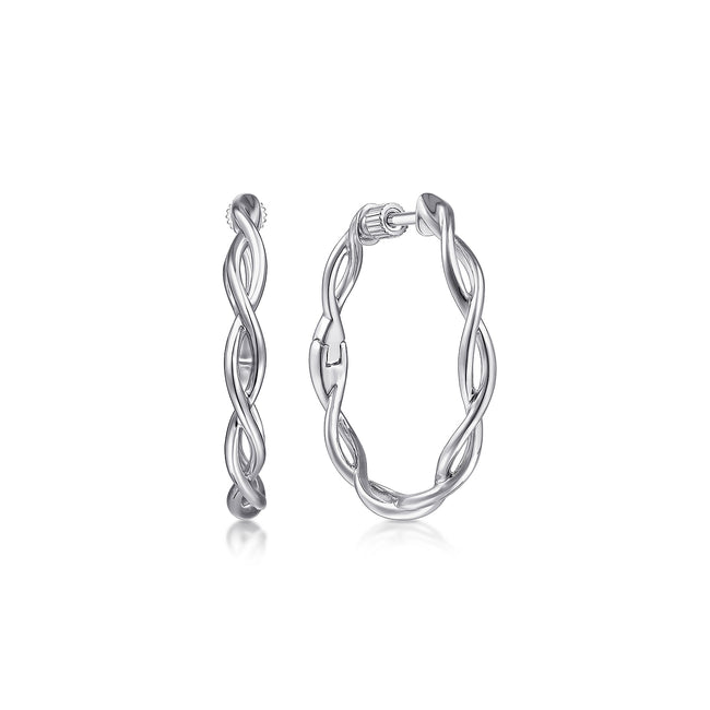 925 Sterling Silver 25mm Twisted Round Classic Hoop Earrings