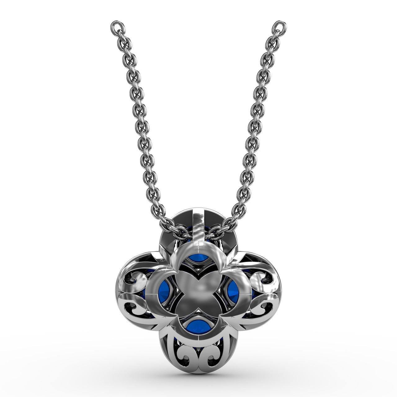 This flower sapphire and diamond pendant comes in a variety of material types like 14k white gold, yellow gold, rose gold and can be customized. Fana gemstone pendants are perfect for that special woman in your life