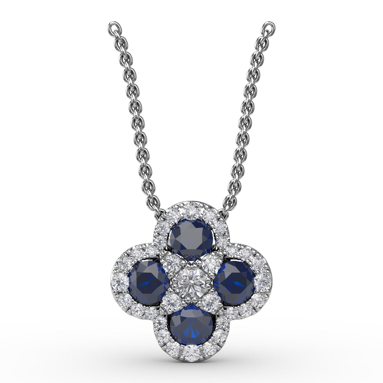 You're reviewing: Fana 14k White Gold Flower Sapphire and Diamond Pendant