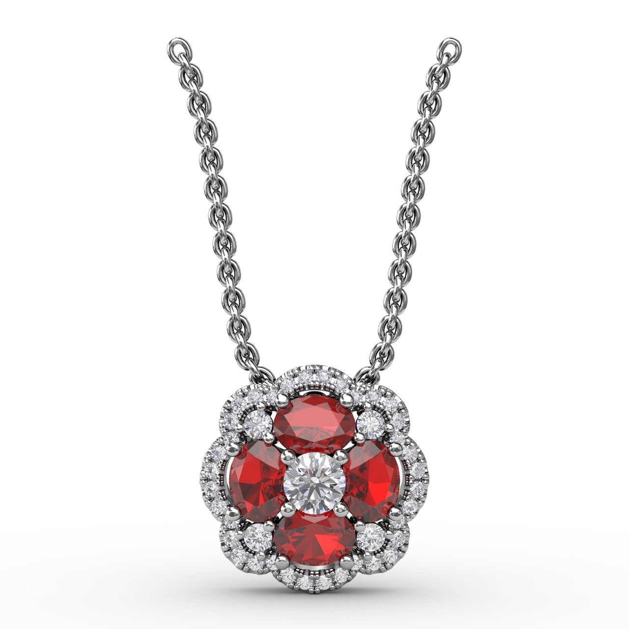 You're reviewing: Fana 14k White Gold Love in Bloom Ruby and Diamond Pendant