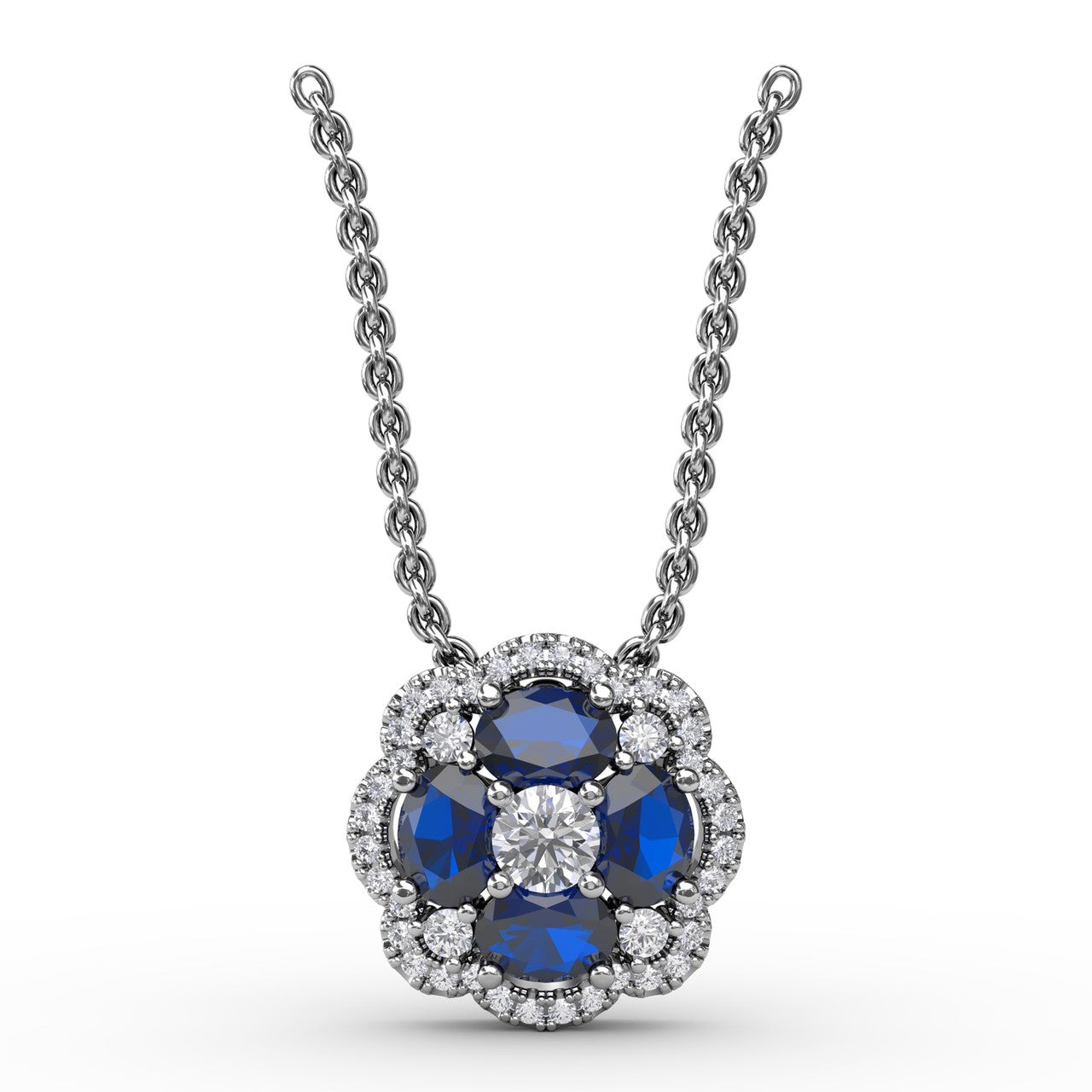You're reviewing: Fana 14k White Gold Love in Bloom Sapphire and Diamond Pendant