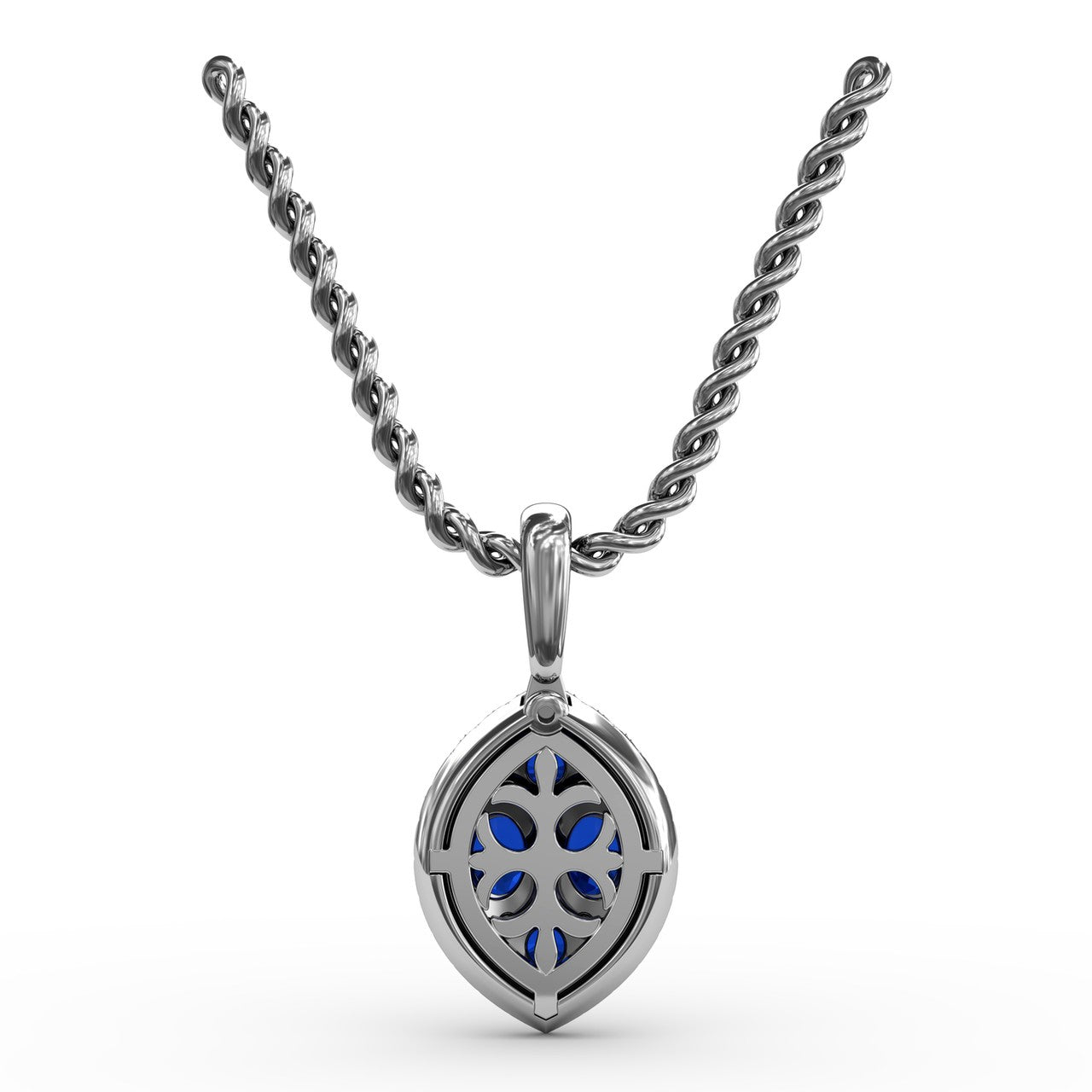 This marquise sapphire and diamond pendant comes in a variety of material types like 14k white gold, yellow gold, rose gold and can be customized. Fana gemstone pendants are perfect for that special woman in your life