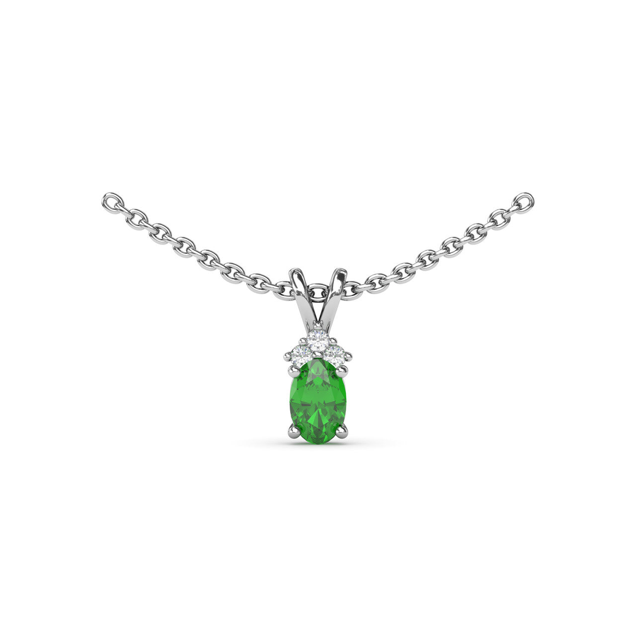 This timeless oval emerald and diamond pendant is topped with 3 round diamonds creating perfect harmony. This pendant come in a variety of material types like 14k white gold, yellow gold, rose gold and can be customized. Classic Fana pendants are perfect for that special woman in your life.