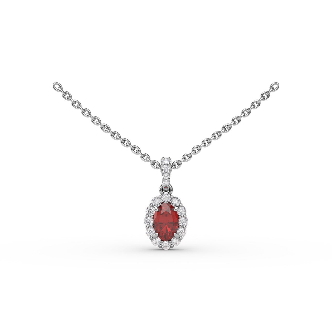You're reviewing: Fana 14k White Gold Ruby and Diamond Halo Necklace