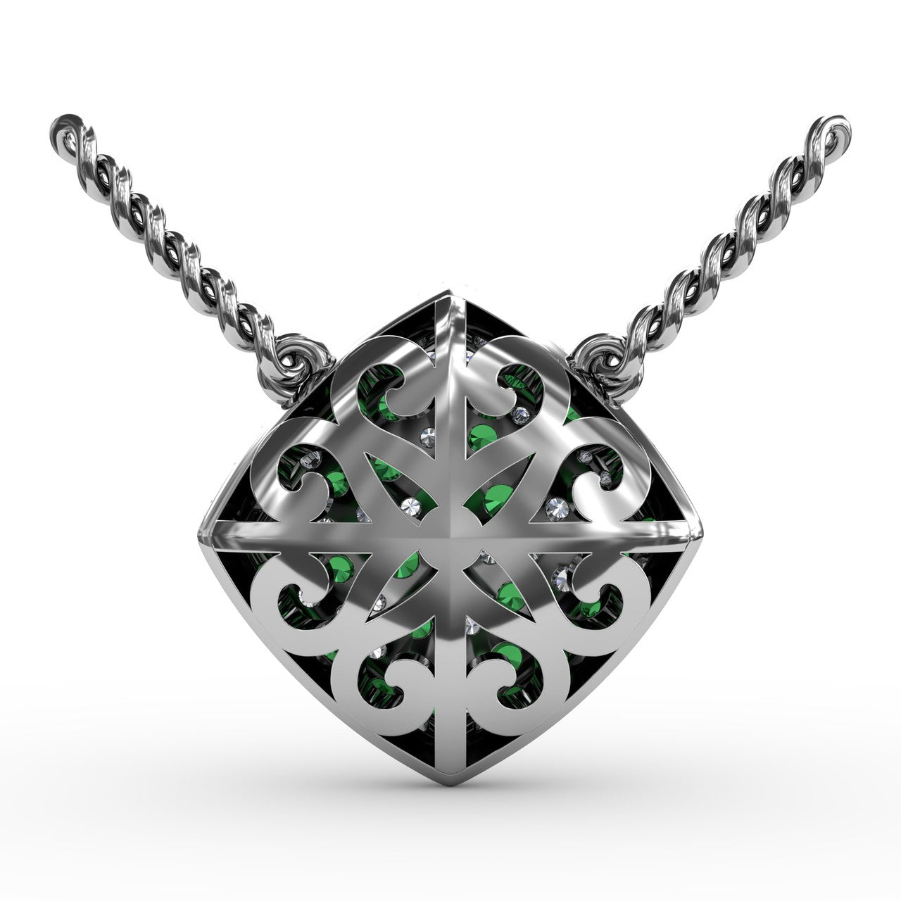 This up the glam emerald and diamond pendant comes in a variety of material types like 14k white gold, yellow gold, rose gold and can be customized. Fana gemstone pendants are perfect for that special woman in your life.
