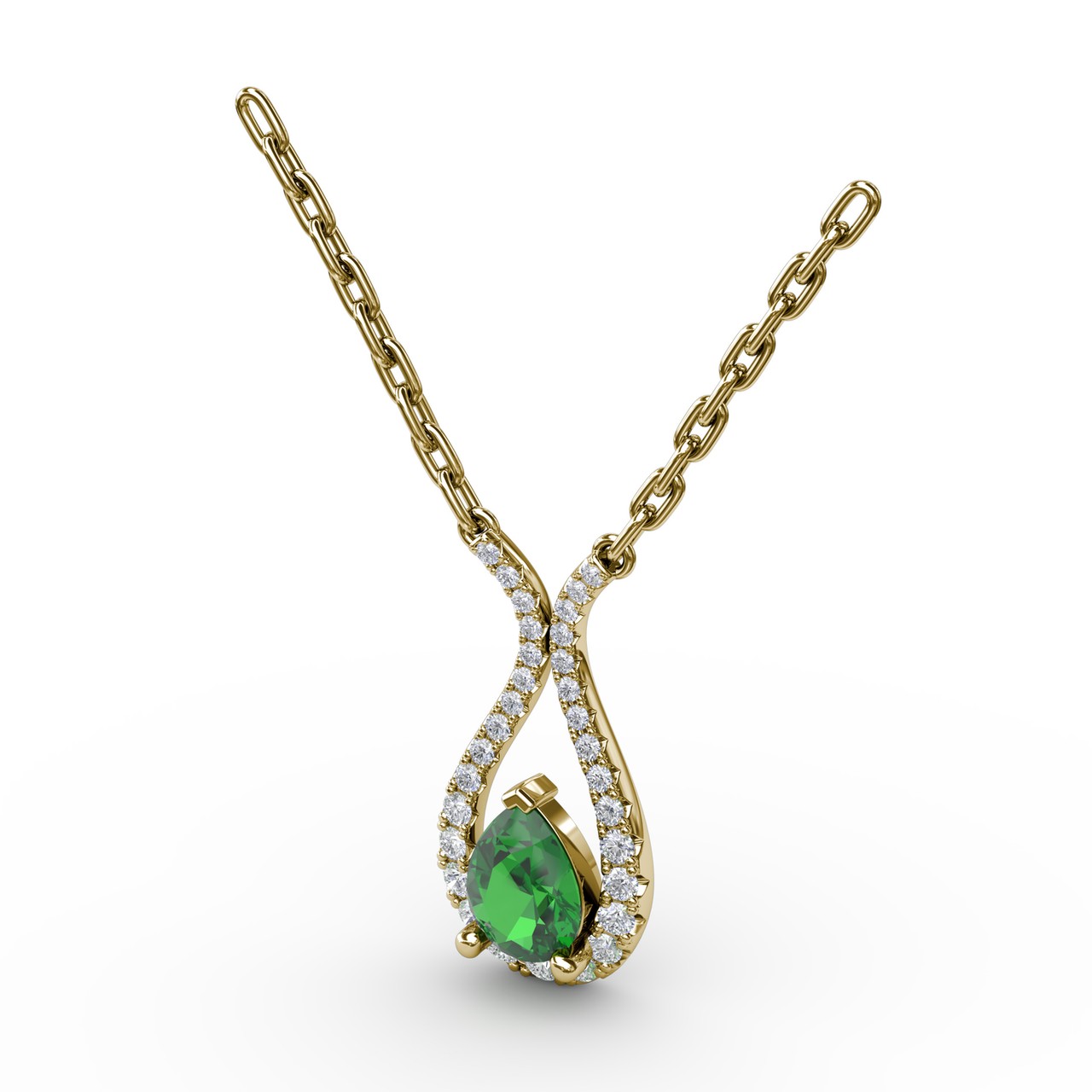 This feel the love teardrop emerald and diamond pendant comes in a variety of material types like 14k white gold, yellow gold, rose gold and can be customized. Fana gemstone pendants are perfect for that special woman in your life