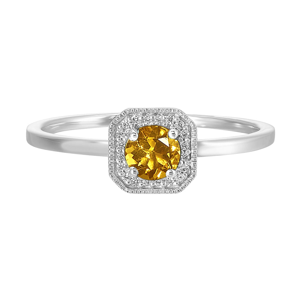 10Kt White Gold Diamond 1/12Ctw & Citrine 1/2Ctw Ring