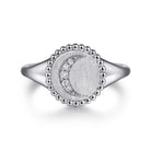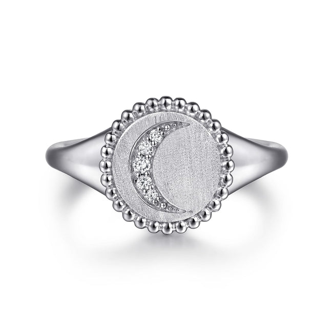 925 Sterling Silver Diamond Bujukan Moon Signet Ring