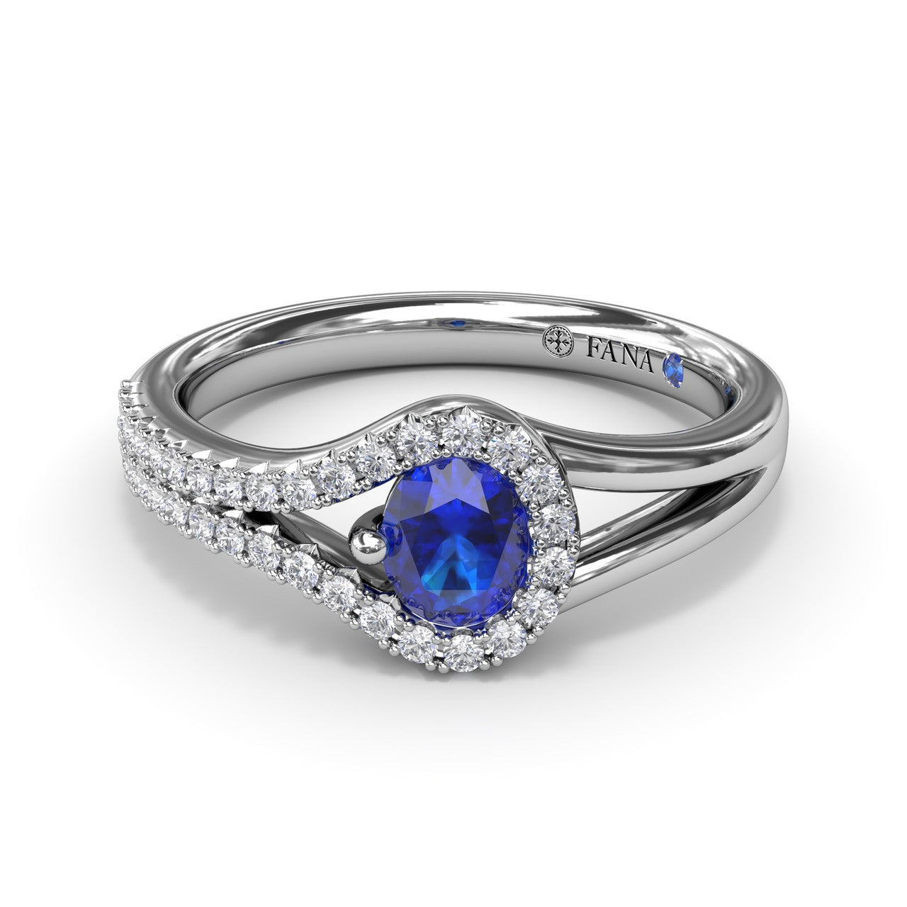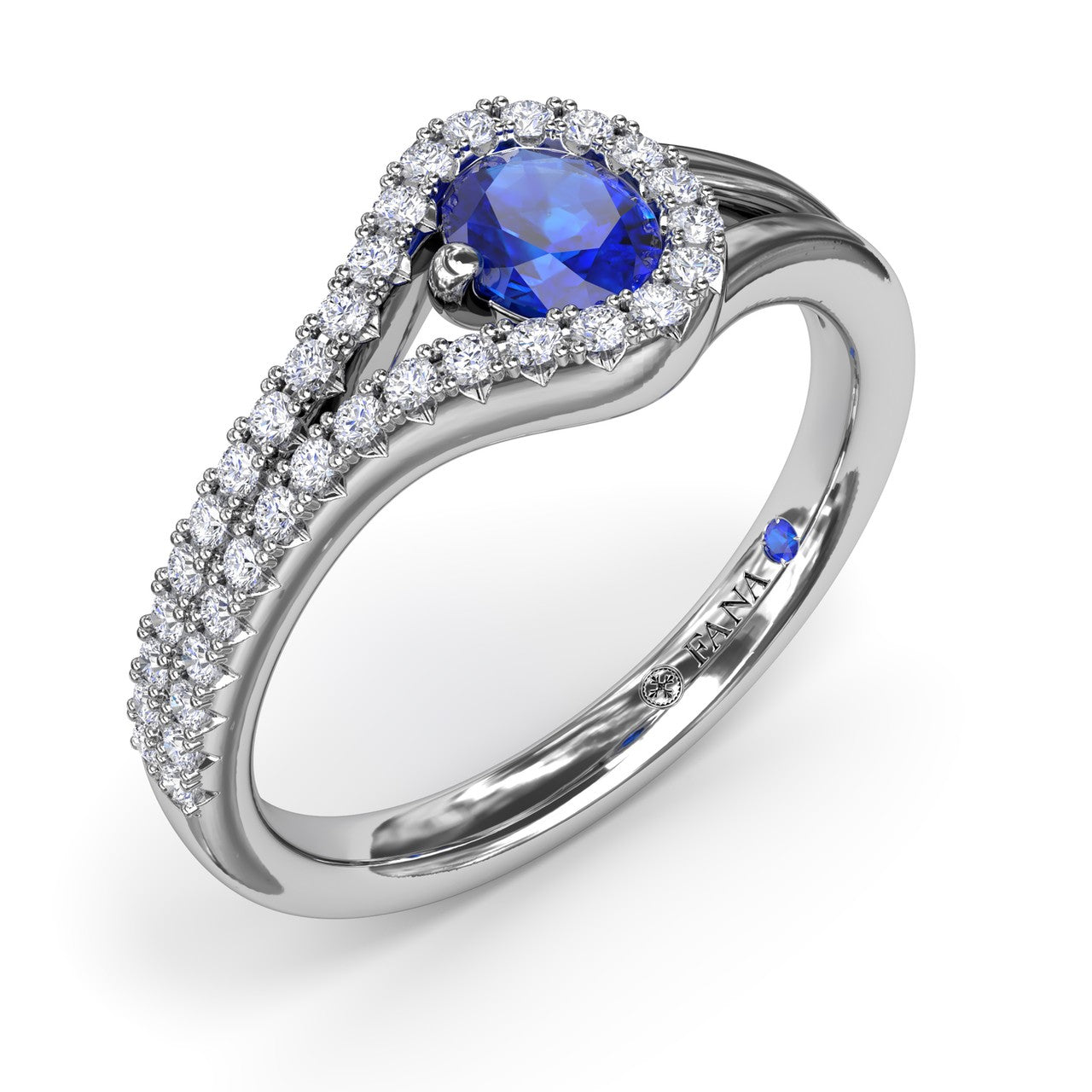 Radiate sophistication with this stunning oval sapphire ring, showcasing a split shank design embellished with diamonds adorning one side of the band, while the other gleams with luminous gold. Fana gemstone rings are perfect for that special woman in your life.