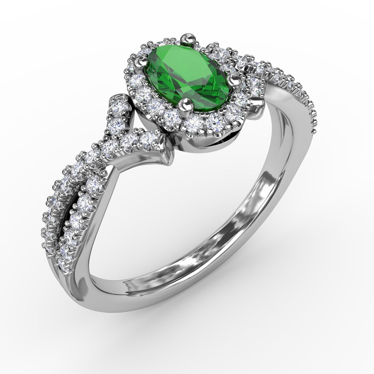 This swirls of love emerald and diamond twist ring comes in a variety of material types like 14k white gold, yellow gold, rose gold and can be customized. Fana diamond fashion rings are perfect for that special woman in your life.