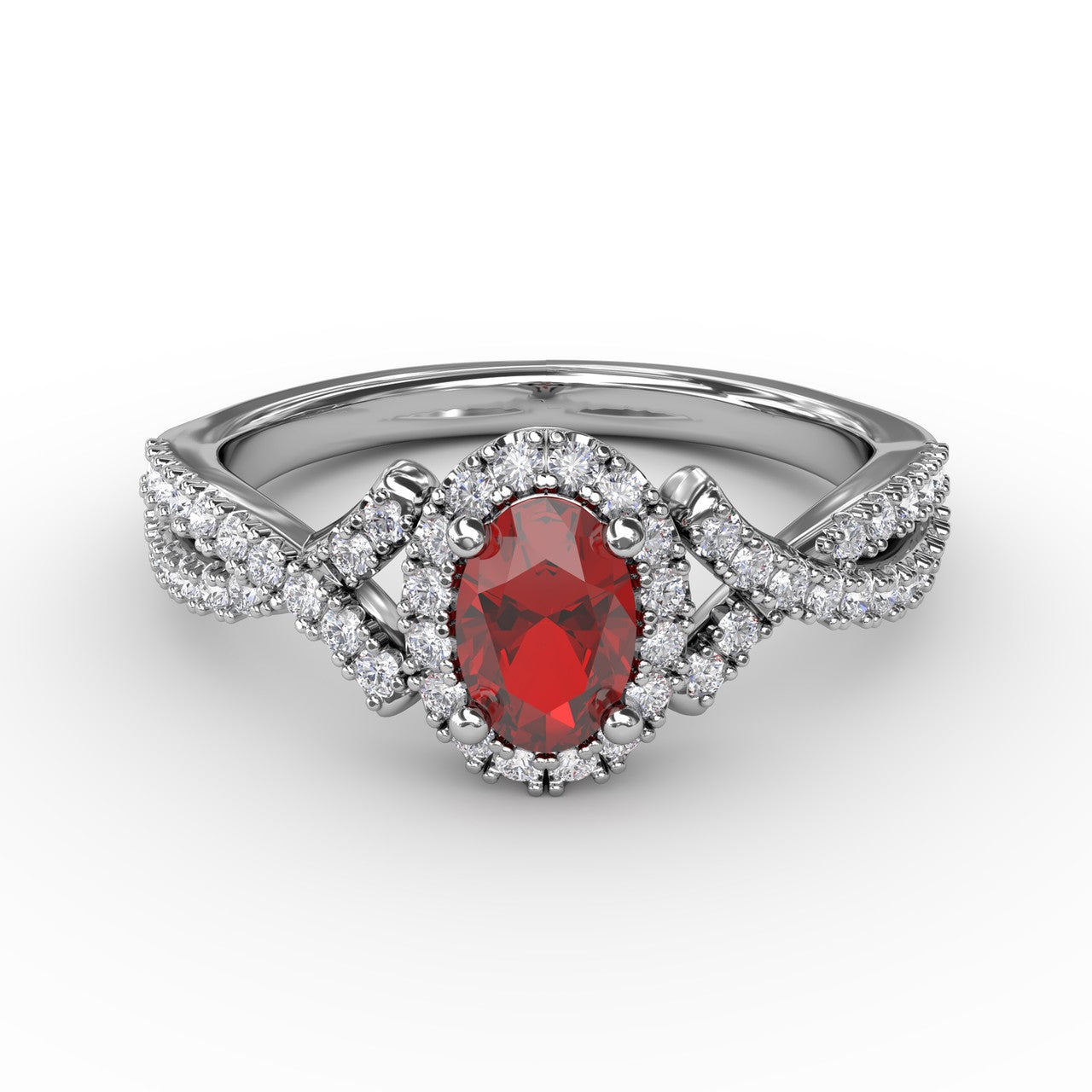 This swirls of love ruby and diamond twist ring comes in a variety of material types like 14k white gold, yellow gold, rose gold and can be customized. Fana diamond fashion rings are perfect for that special woman in your life.