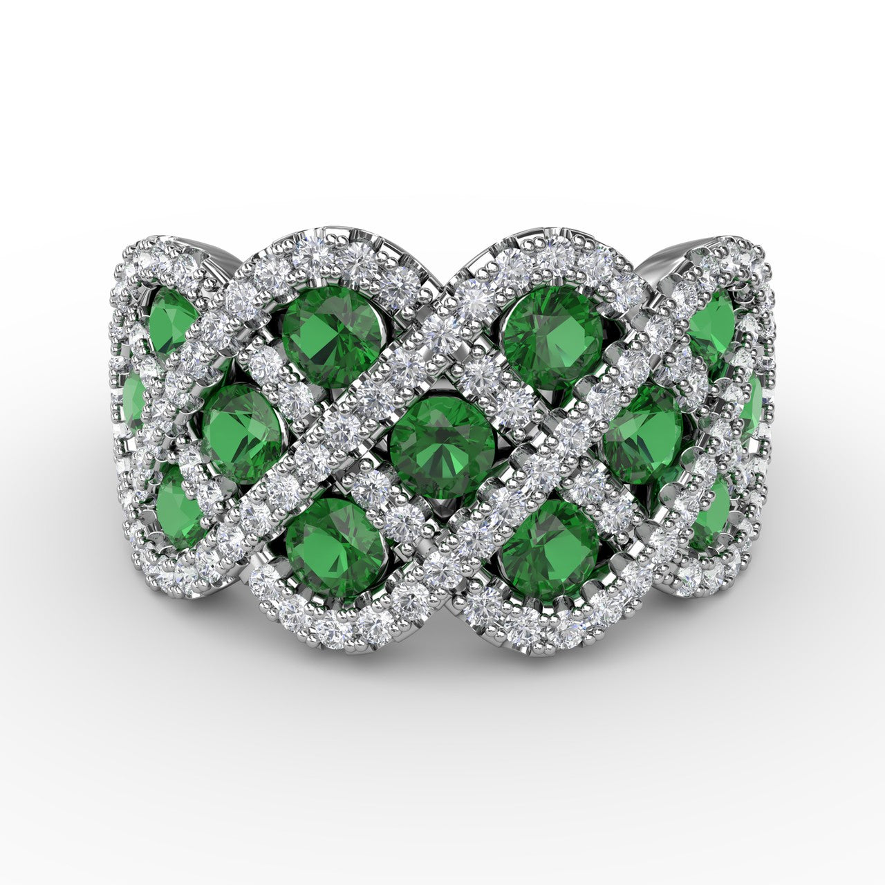 This you and me emerald and diamond interweaving ring comes in a variety of material types like 14k white gold, yellow gold, rose gold and can be customized. Classic Fana gemstone fashion rings are perfect for that special woman in your life.