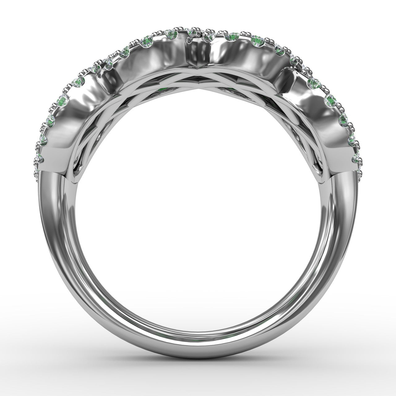 You're reviewing: Fana 14k White Gold You And Me Emerald And Diamond Interweaving Ring
