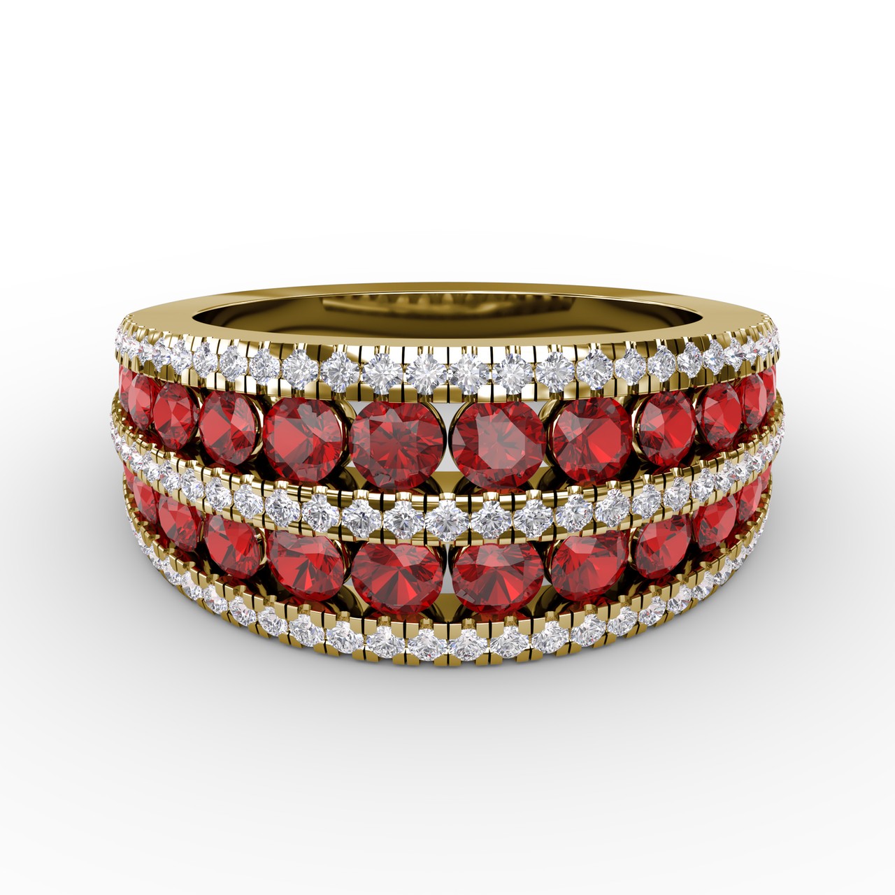 You're reviewing: Fana 14k Yellow Gold Chasing Bliss Ruby and Diamond Stacked Row Ring