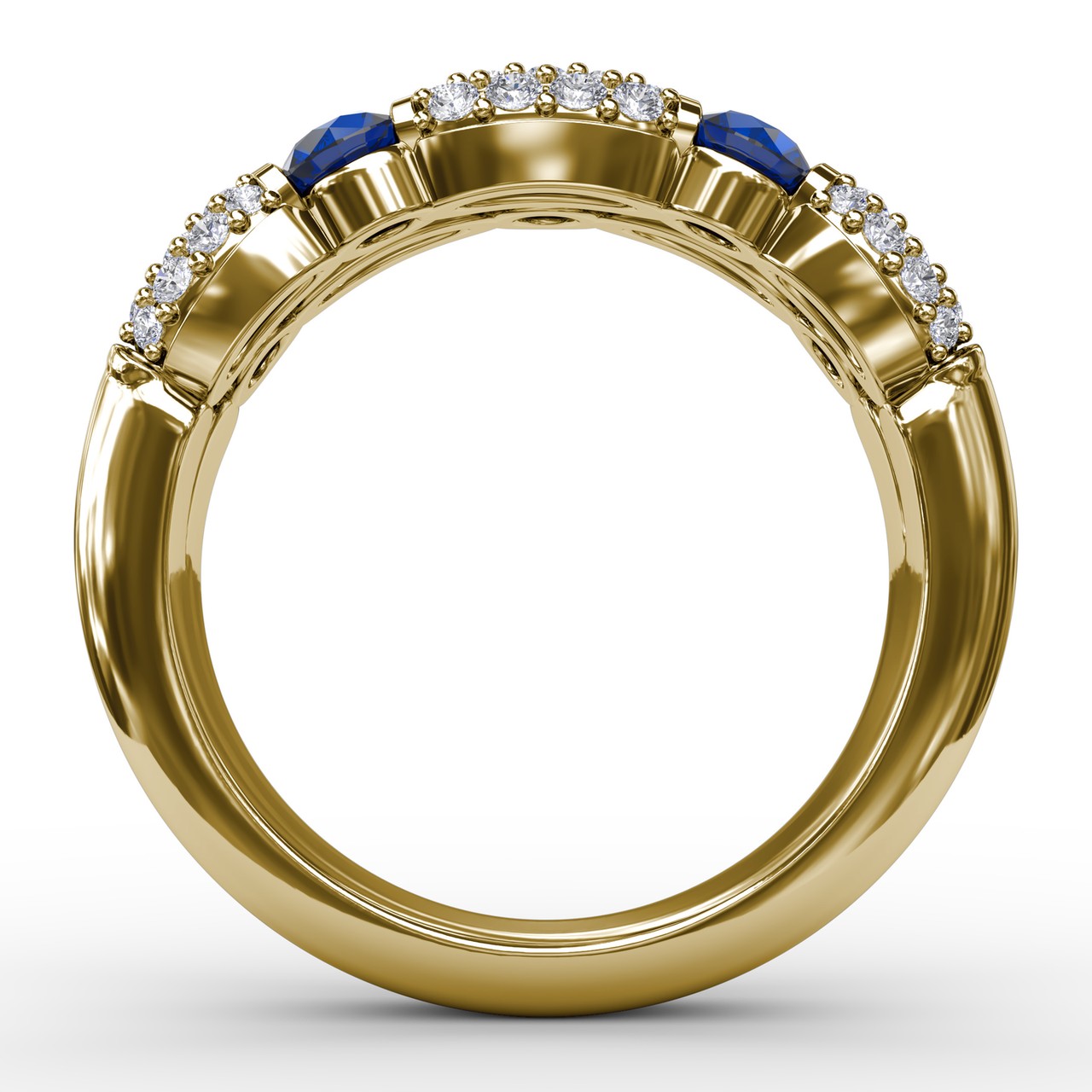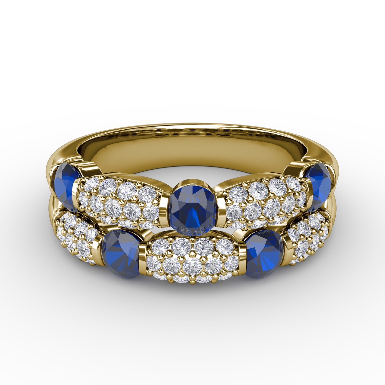 Fana 14k Yellow Gold Double Row Sapphire and Diamond Ring