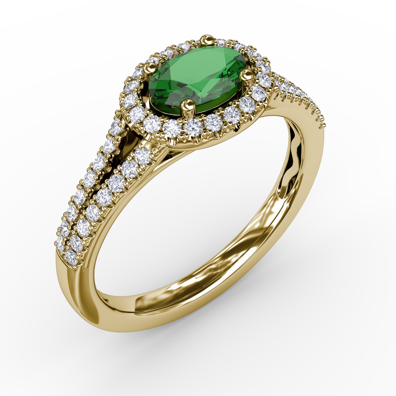 Fana 14k Yellow Gold Halo Emerald and Diamond Ring