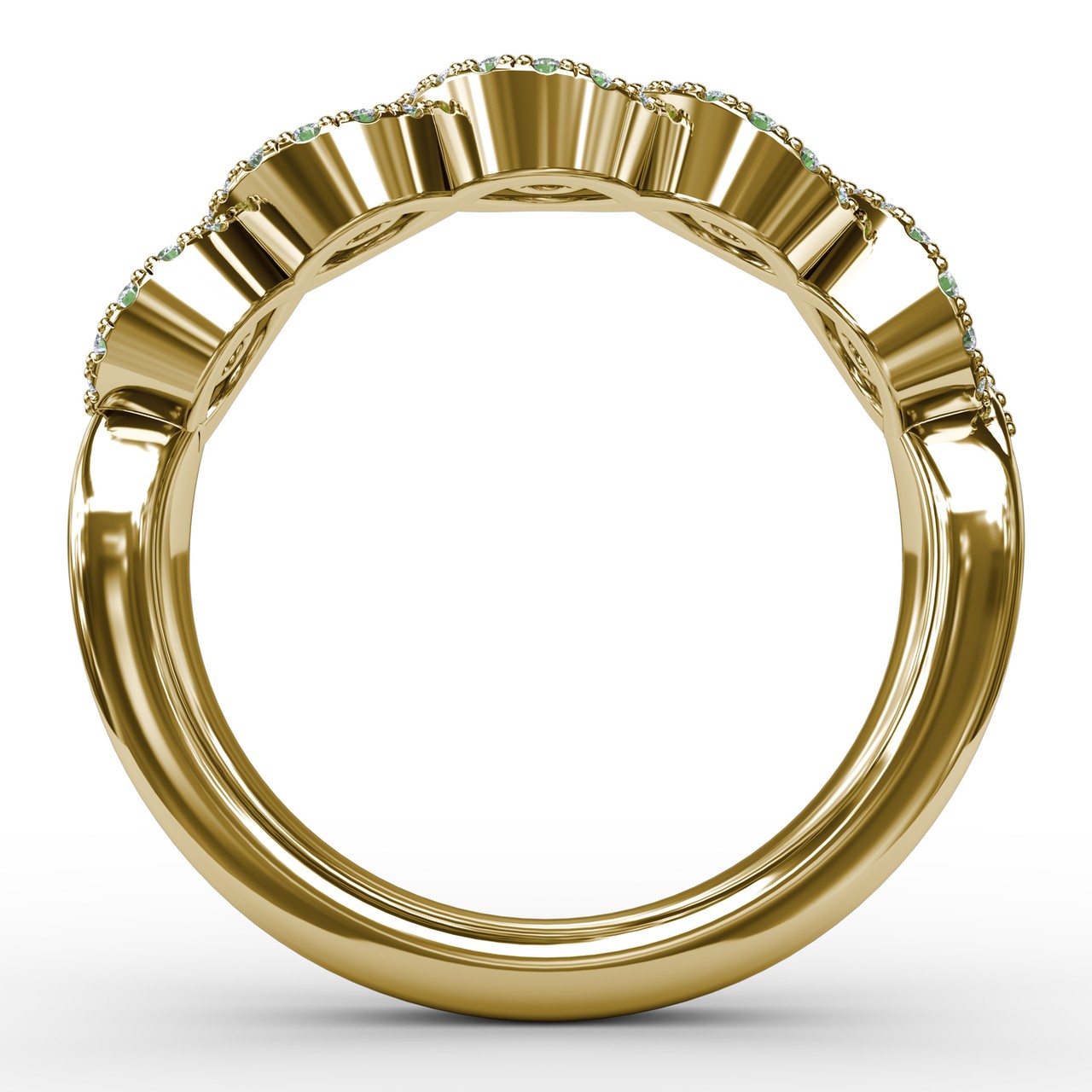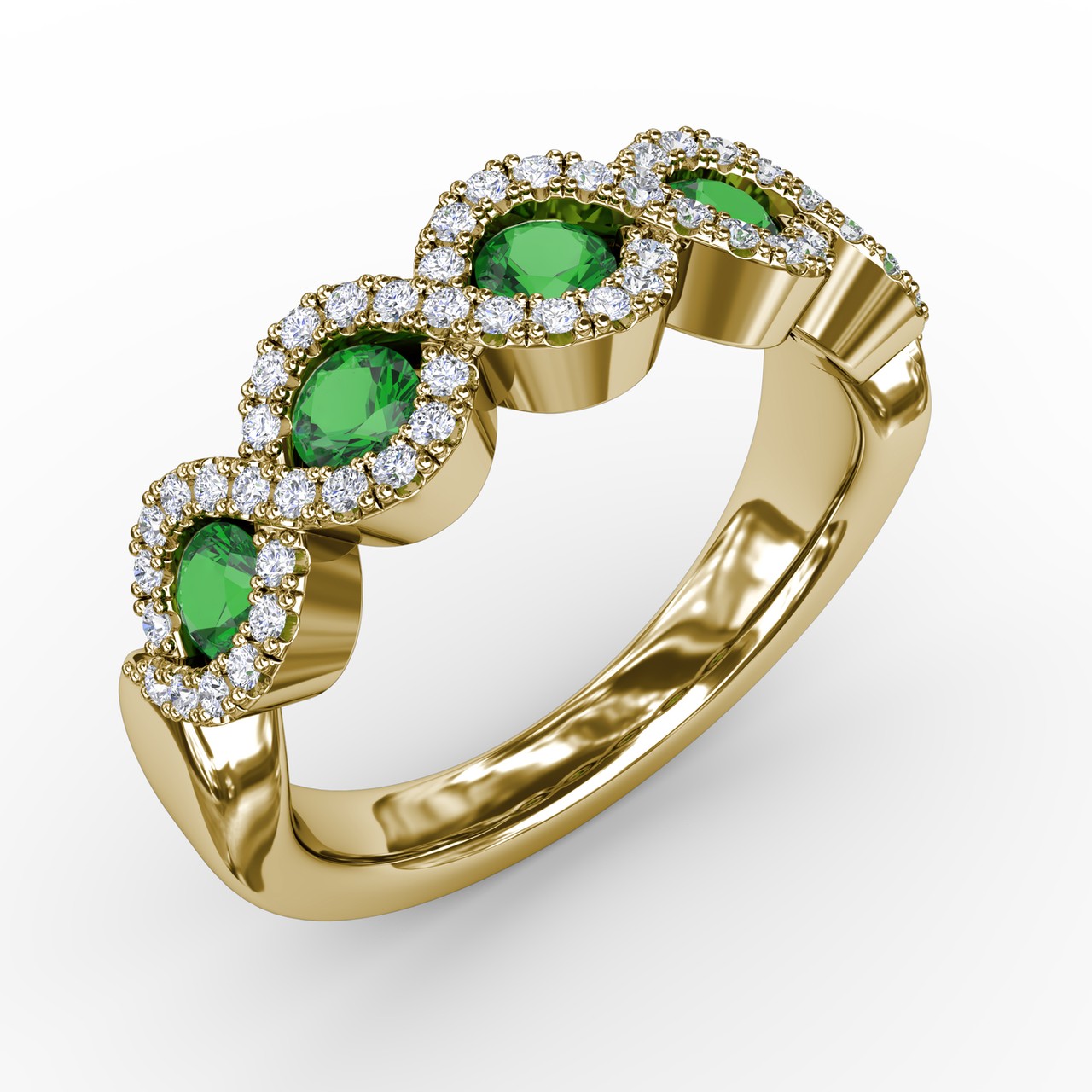 This hold me close emerald and diamond twist ring comes in a variety of material types like 14k white gold, yellow gold, rose gold and can be customized. Fana gemstone fashion rings are perfect for that special woman in your life.