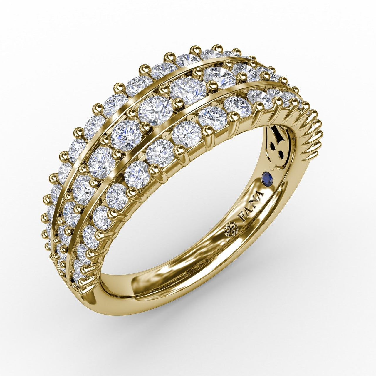 Fana 14k Yellow Gold Three-Row Channel-Set Diamond Band