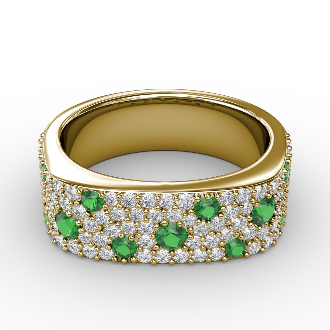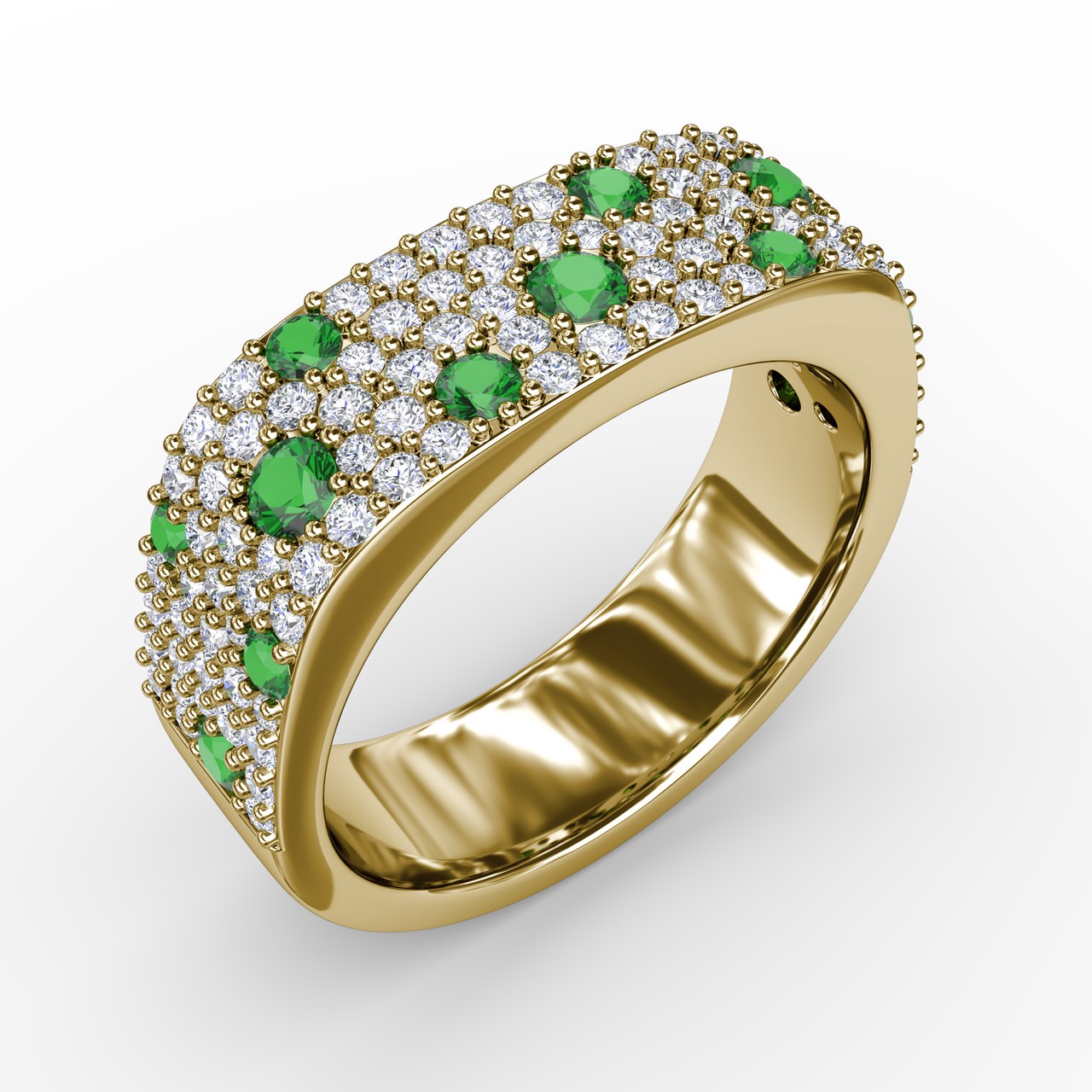 This under the stars emerald-speckled diamond ring comes in a variety of material types like 14k white gold, yellow gold, rose gold and can be customized. Fana diamond fashion rings are perfect for that special woman in your life.