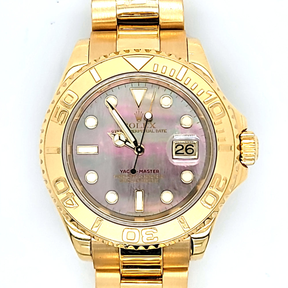 40MM YACHTMASTER 18YG, BLACK MOP DIAL W/ OYSTER BAND, MODEL 16628, SERIAL Y854406, PAPERS DATED 2004