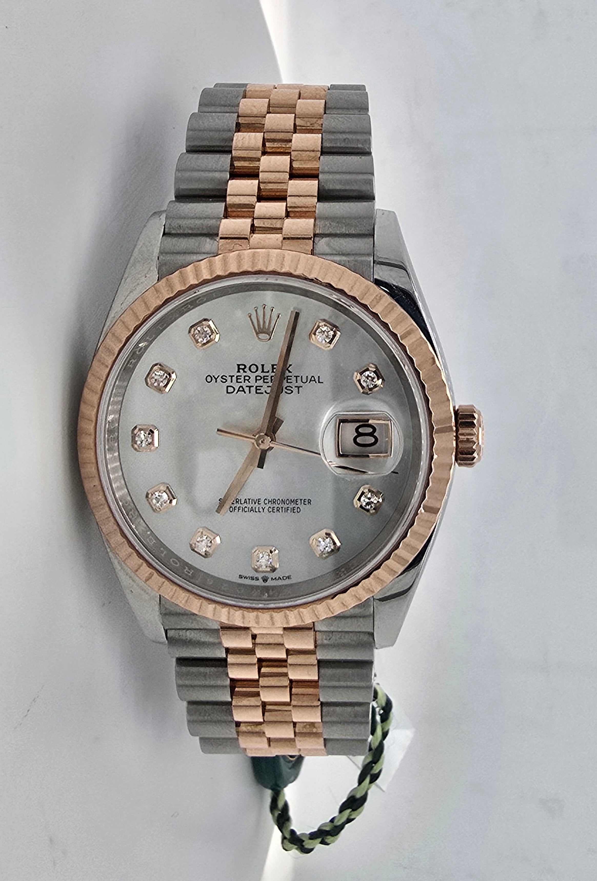 36MM DATEJUST SS CASE, 18RG FLUTED BEZEL, ROLEX MOP DIAMOND DIAL, SS AND 18RG JUBILEE BAND, MODEL N