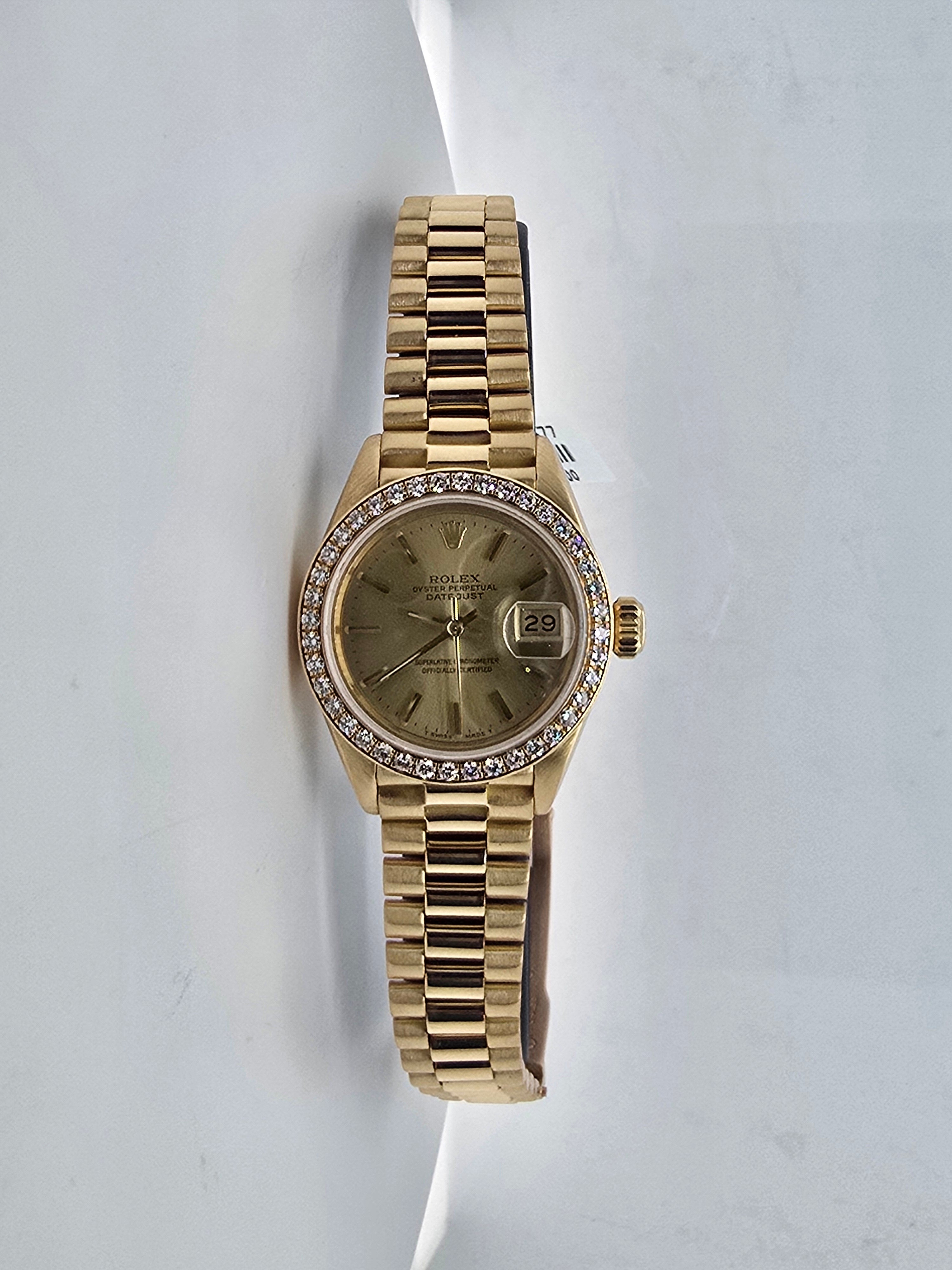 26MM PRESIDENT, 18Y, CHAMPAGNE DIAL, 18Y DIAMOND BEZEL, 18Y PRESIDENT BAND, MODEL #69178, SERIAL # 9