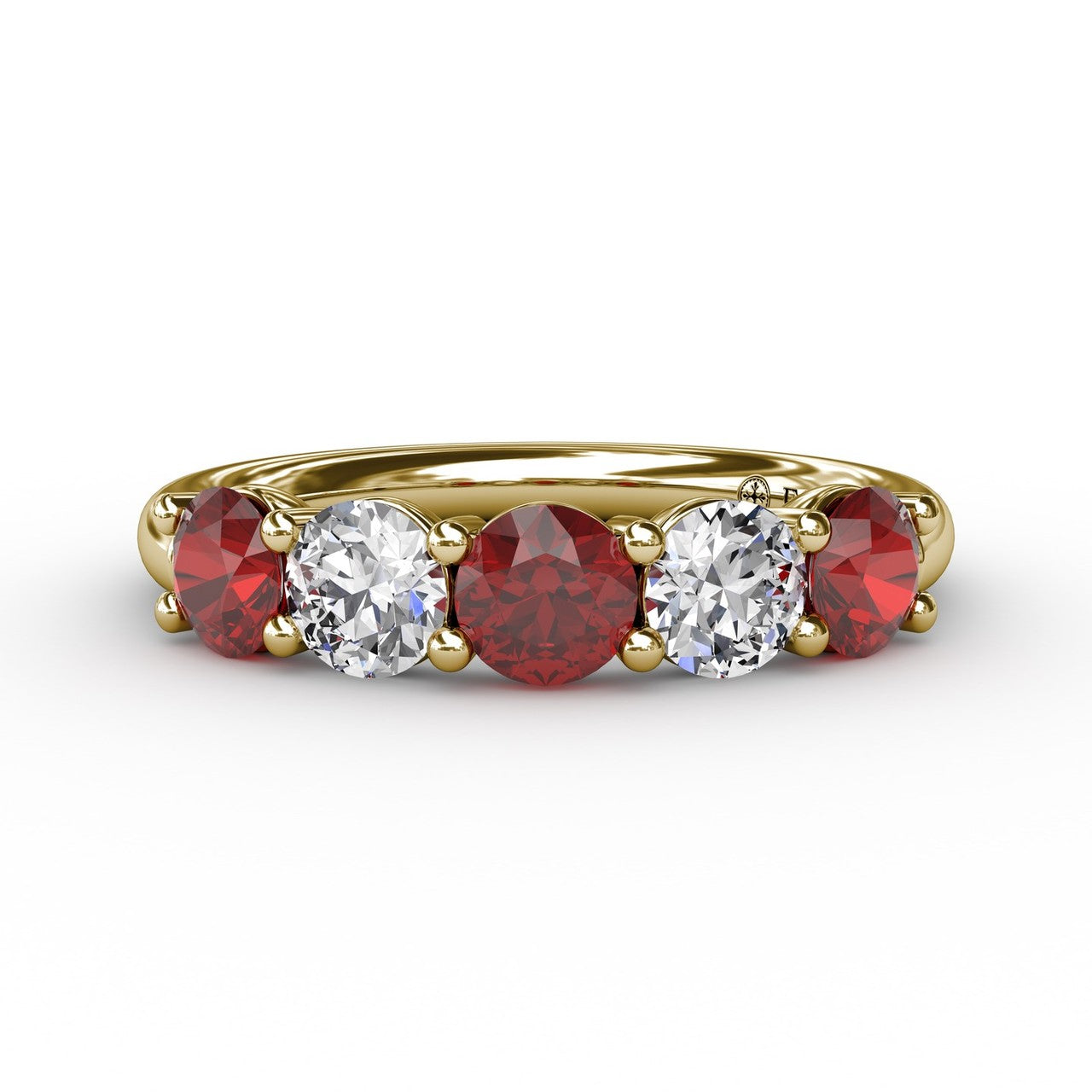 You're reviewing: Fana 14k Yellow Gold Chunky Ruby and Diamond Shared Prong Anniversary Band
