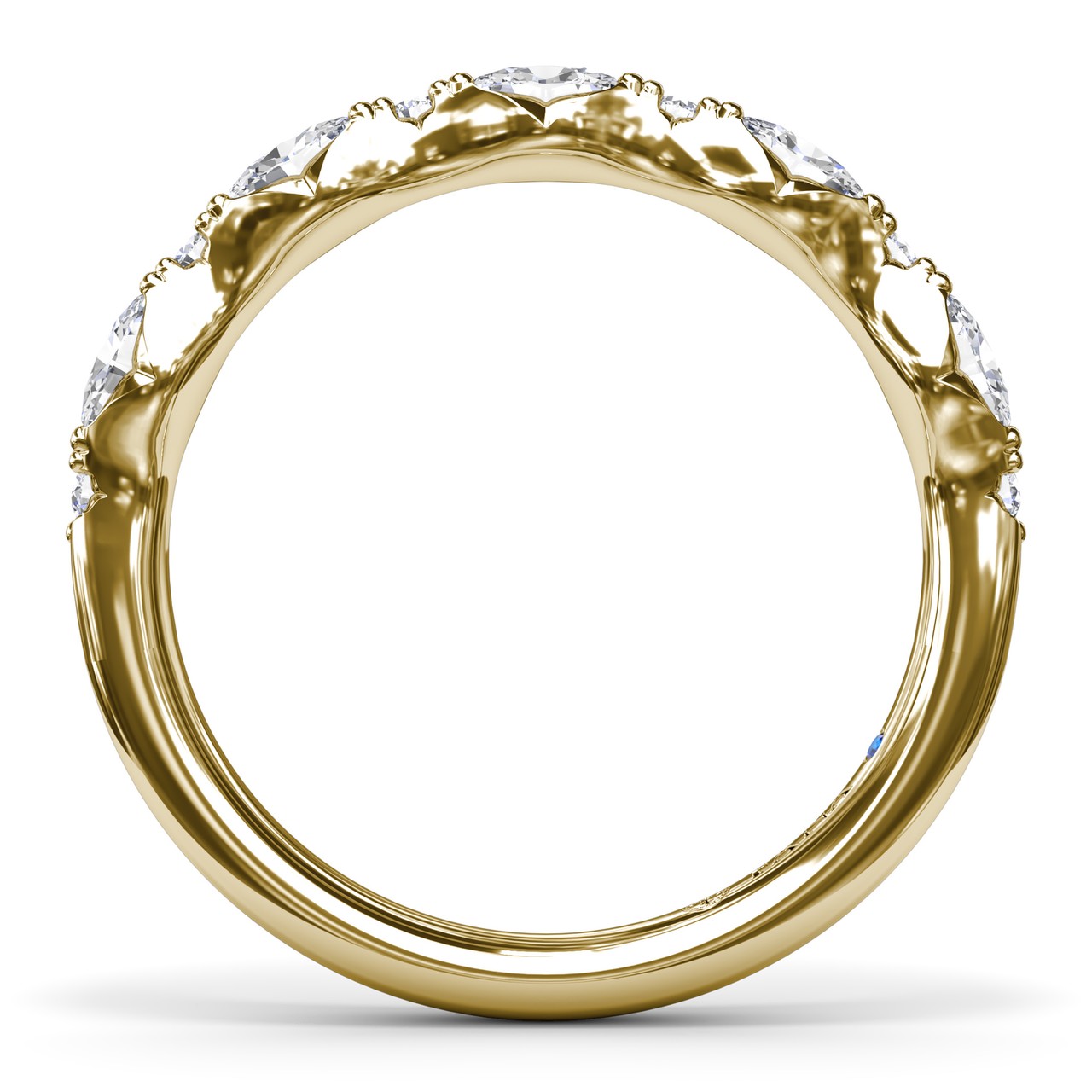 A variety of oval diamonds set between round diamonds makes this ring a true classic. Perfect for stacking, this band can be special ordered in any finger size, in Platinum, 18KT & 14KT gold.