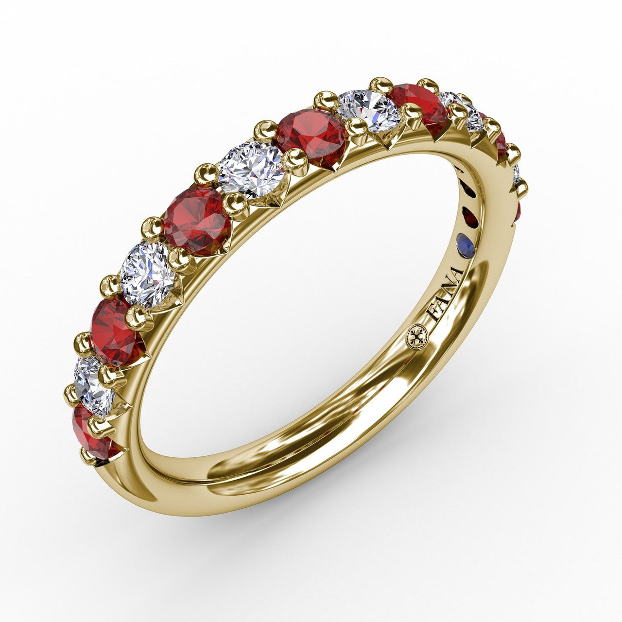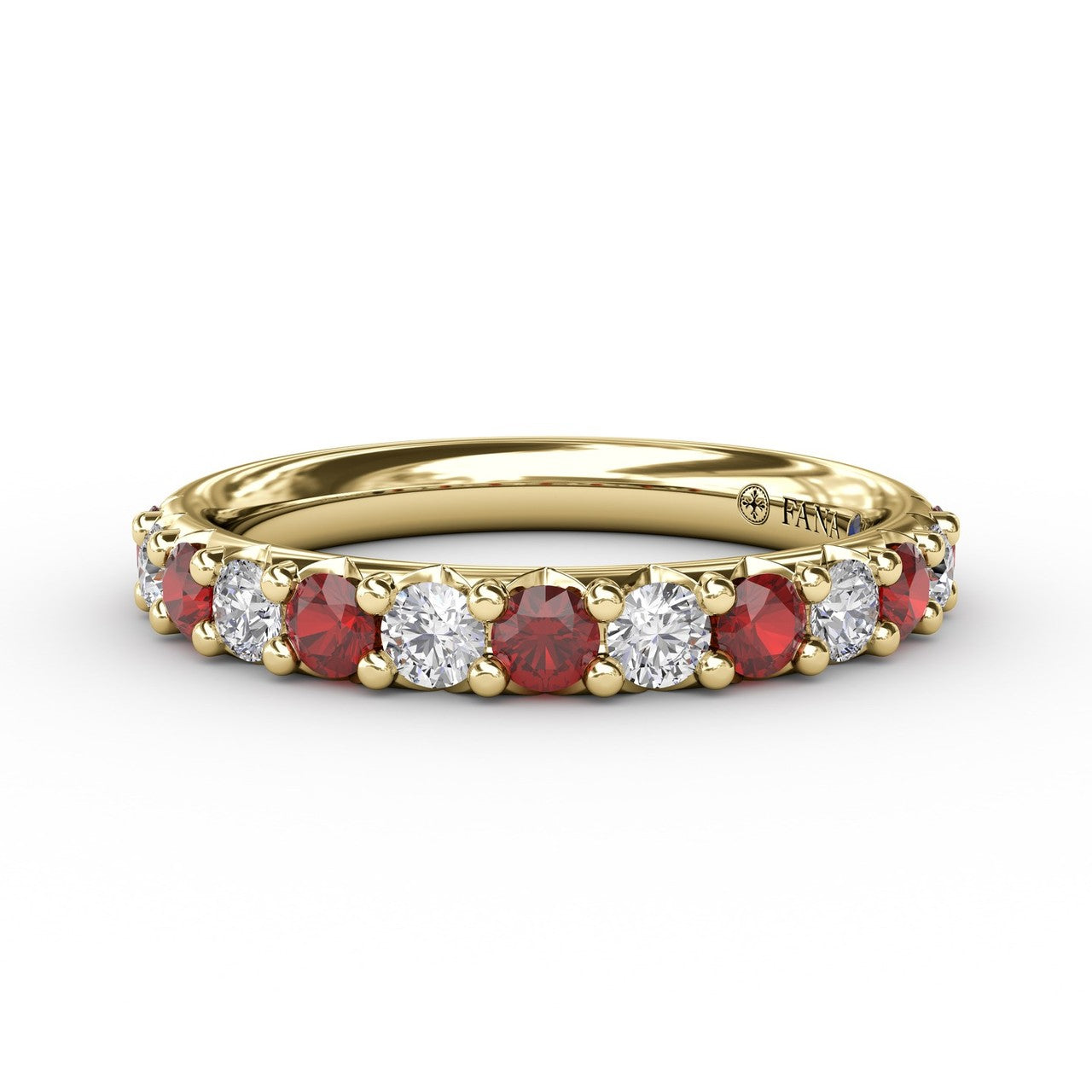 You're reviewing: Fana 14k Yellow Gold Ruby and Diamond Shared Prong Anniversary Band