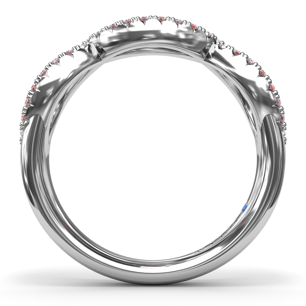 Fana 18k White Gold Crossover Ruby and Diamond Wedding Band