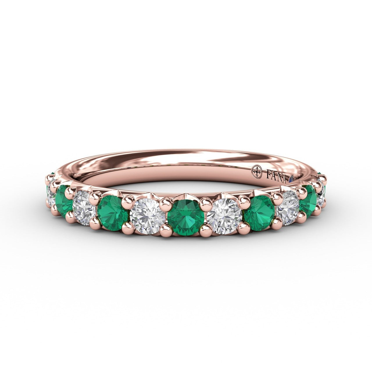 You're reviewing: Fana 18k White Gold Emerald and Diamond Shared Prong Anniversary Band