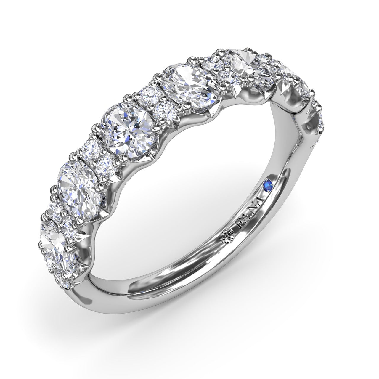 A variety of oval diamonds set between round diamonds makes this ring a true classic. Perfect for stacking, this band can be special ordered in any finger size, in Platinum, 18KT & 14KT gold.