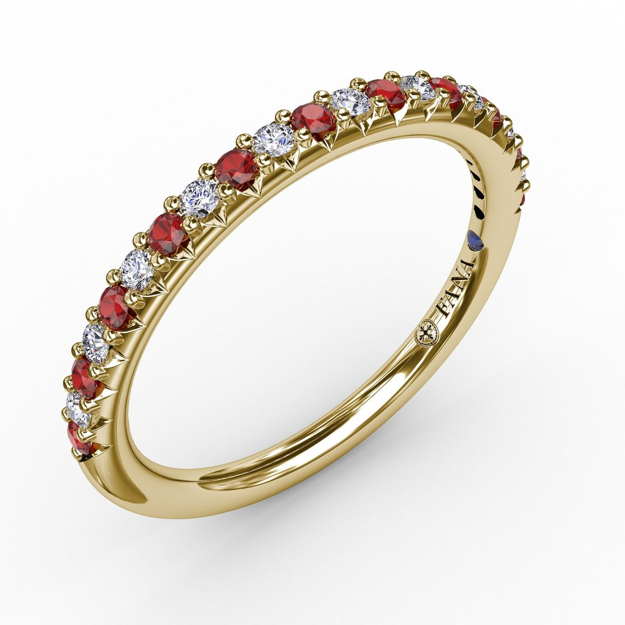Fana 18k Yellow Gold Delicate Ruby Shared Prong Anniversary Band