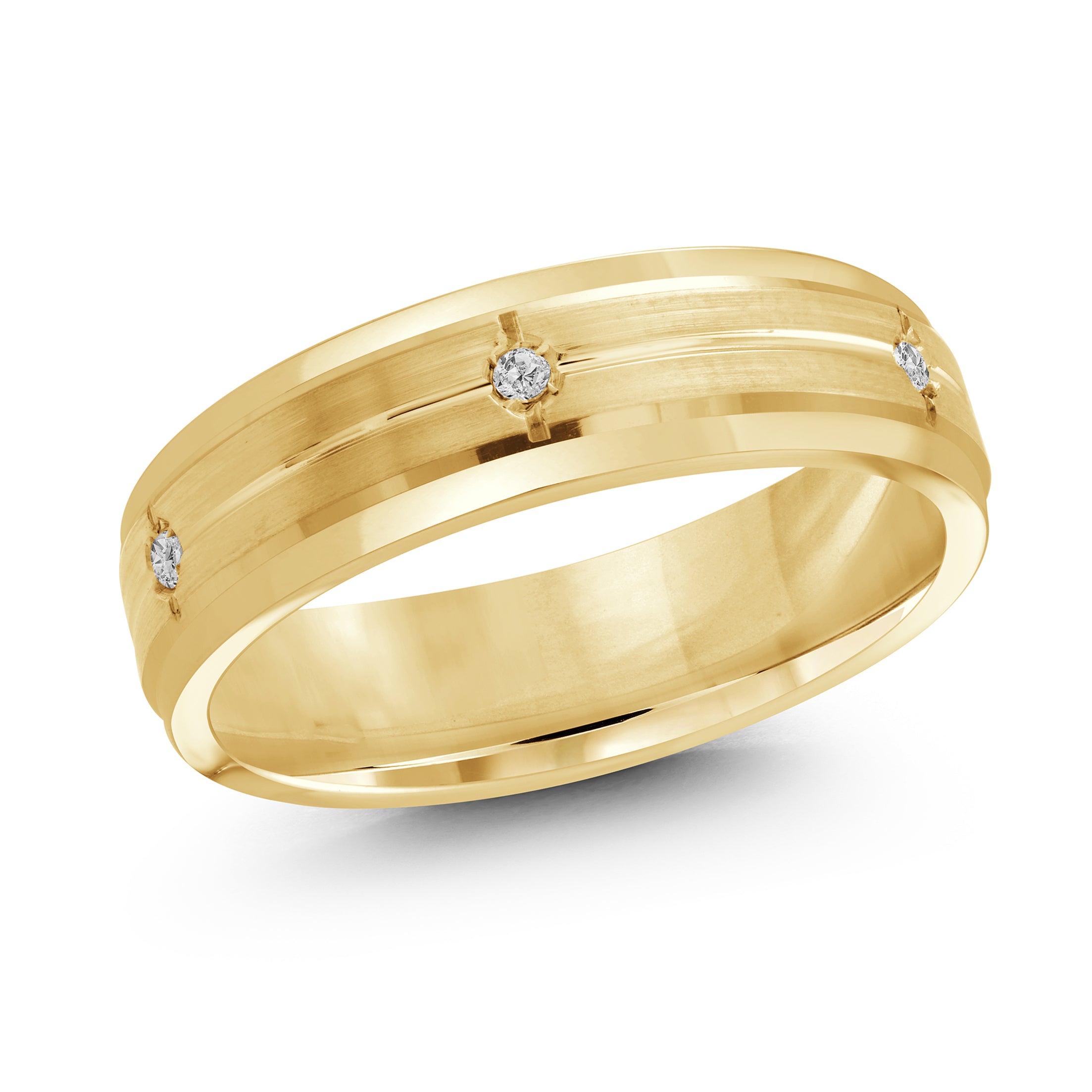 6mm yellow gold wedding band embelished with 6x0.02ct round diamonds