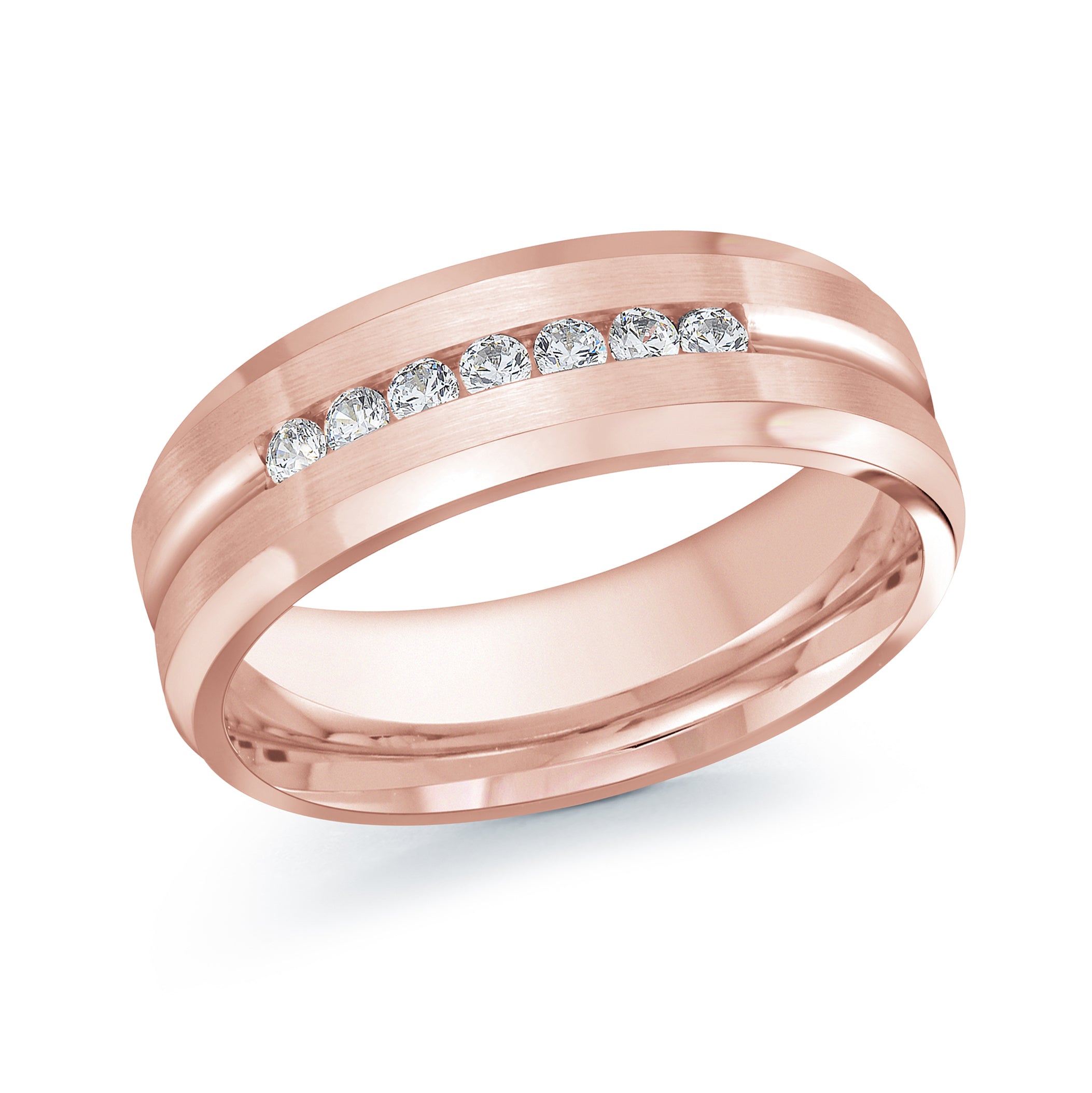 7mm rose gold wedding band embelished with 7x0.03ct round diamonds