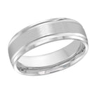 This best seller 7mm white gold wedding ring feature an elevated satin center with high polish edges and the ring is finished off with high polish flat edges.