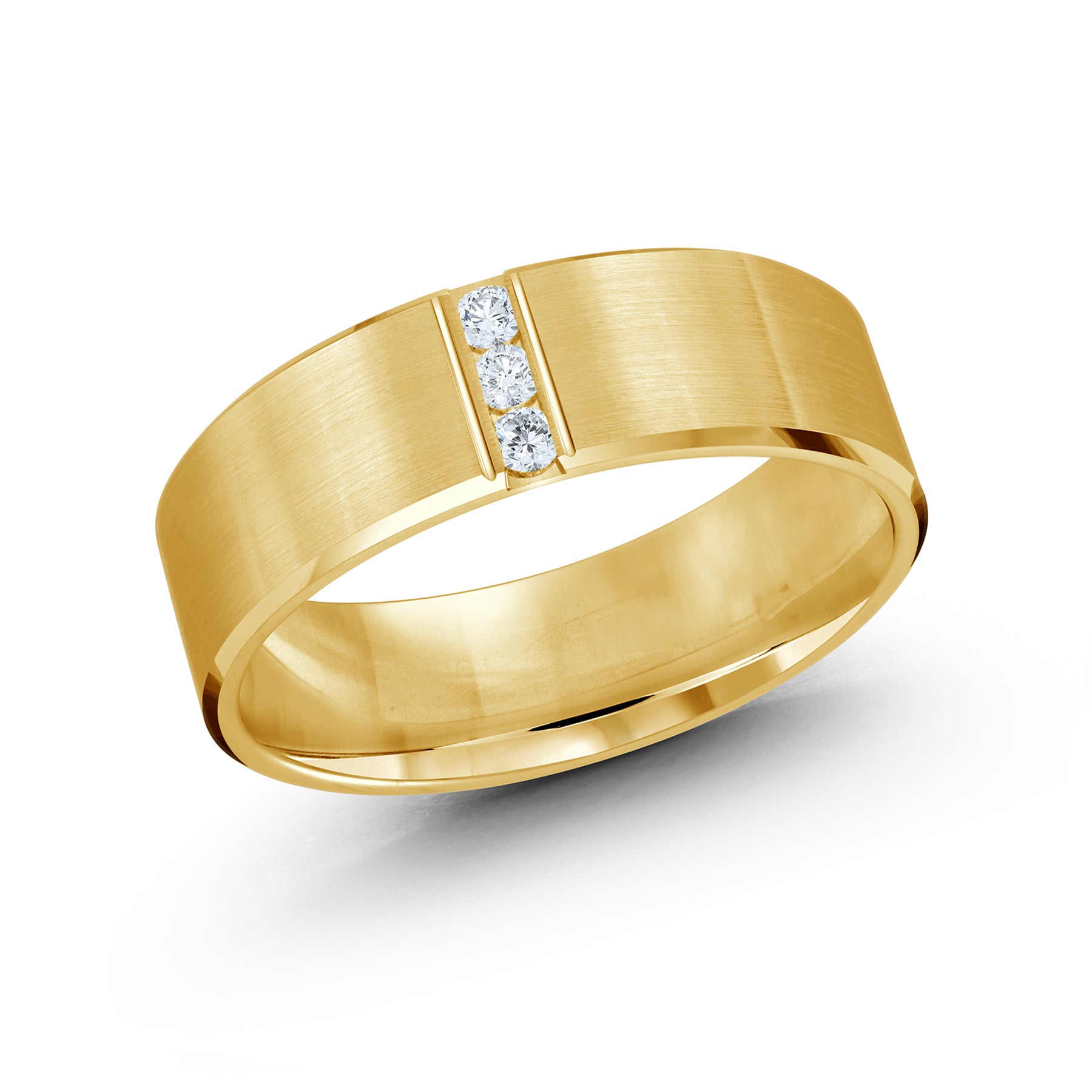 7mm yellow gold wedding band embelished with 3x0.03ct round diamonds