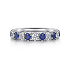 14K White Gold 11 Stone Diamond and Sapphire Anniversary Band