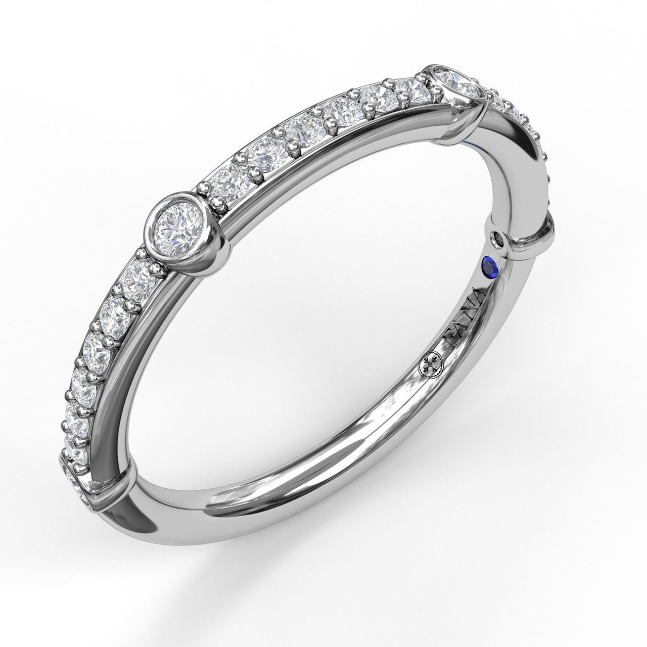 Fana 14k White Gold Bead Set Diamond Band with Bezel Stations