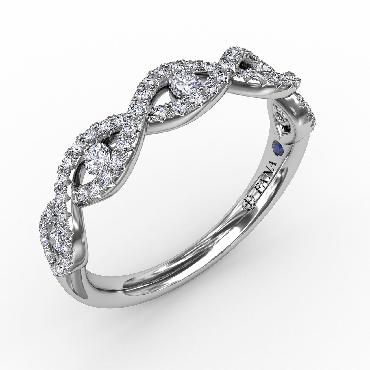 Fana 14k White Gold Twisted Diamond Band with Channel Set Diamonds